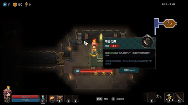一直往前打败怪物,有个宝箱,打开获得斩击之刃,打开I可以查看角色信息。