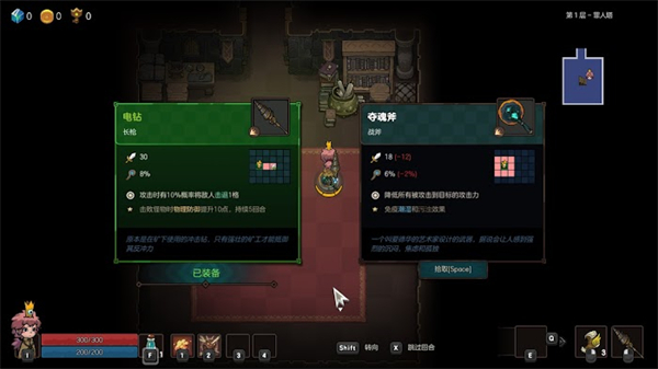 打开宝箱获得捍卫者长枪,按空白键就可以装备。