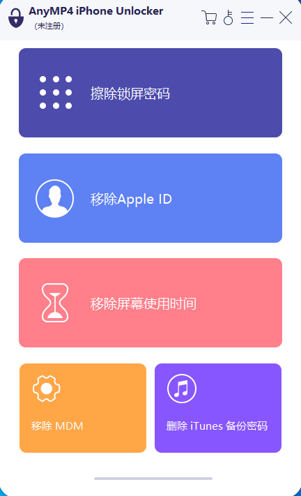 1、删除所有类型的锁屏密码您是否曾经遇到忘记iPhone密码的尴尬境地,尽管发生了种种意外,但您仍必须使用密码解锁iPhone,为避免忘记密码的困境,AnyMP4 iPhone Unlocker出炉可帮助您删除所有类型的锁屏密码,无论您使用的是4位密码,6位密码,Face ID还是Touch ID,都可以在不输入任何密码的情况下解锁iPhone,iPad或iPod