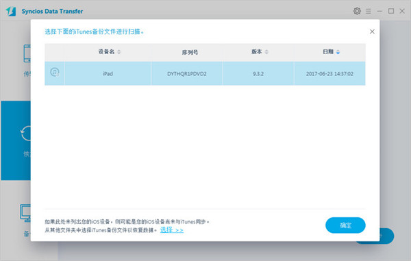 3、用Syncios Data Transfer恢复备份数据
