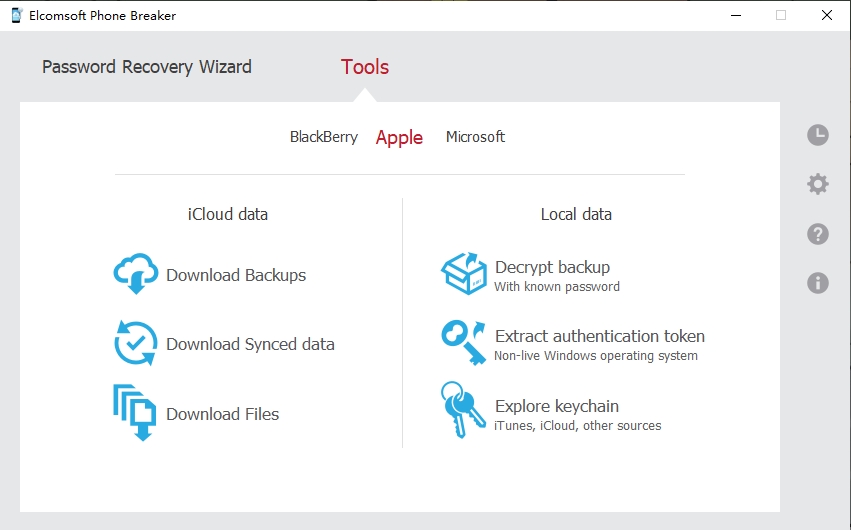 云采集是一种非常有效的方法,可以检索现代智能手机通过其各自的云服务备份或同步的最新信息。Elcomsoft Phone Breaker 支持从 Apple iCloud 和 Microsoft 帐户提取云备份和同步数据,从而实现对 iPhone 和 iPad 设备以及 Windows 设备、Skype 和其他 Microsoft 软件的远程采集。