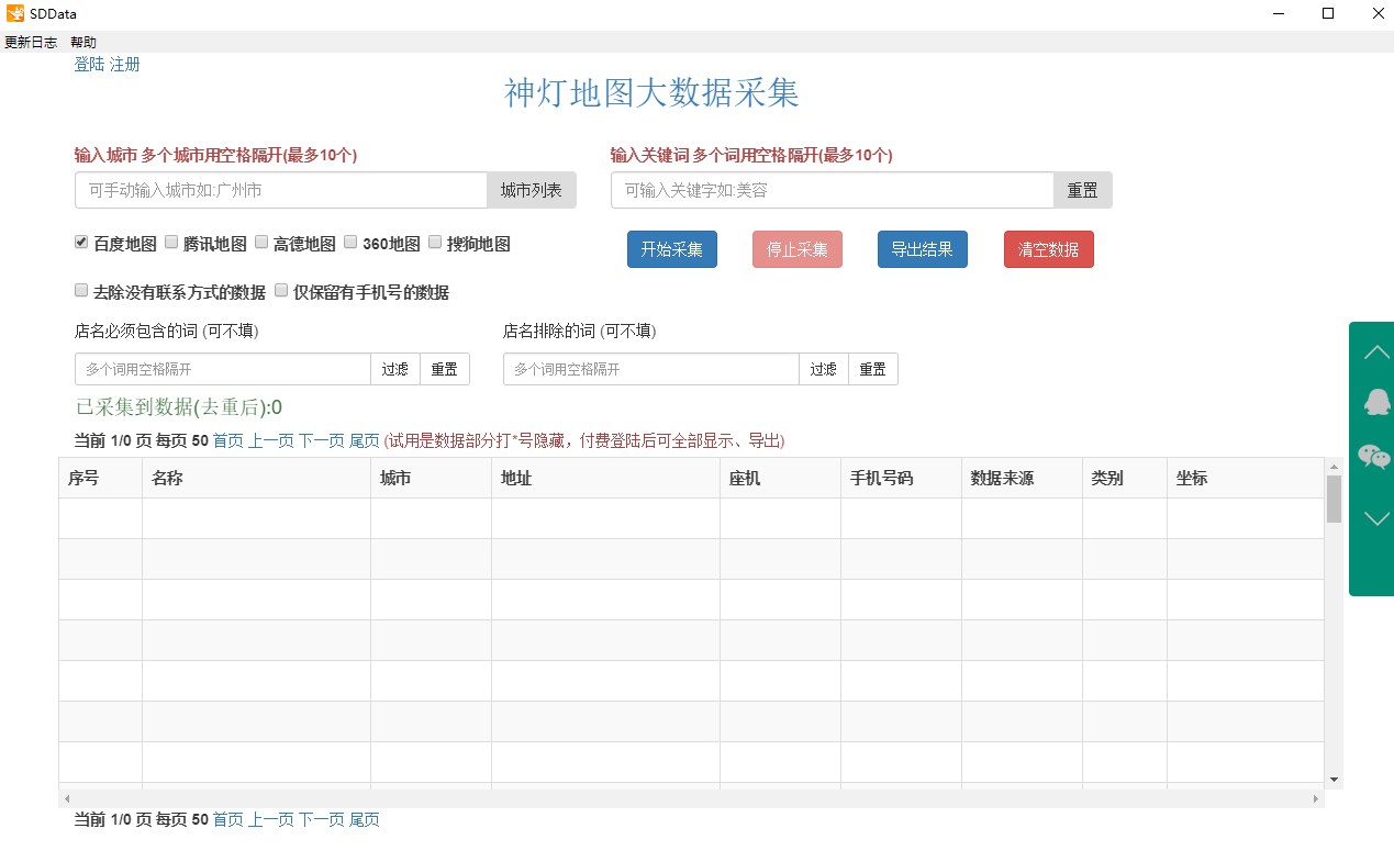 采集市(下属的县级市、县和区的数据都是包含在内的);如果要单独采集县/区,直接在城市框里面输入县/区的名称就可以,如:广饶县。