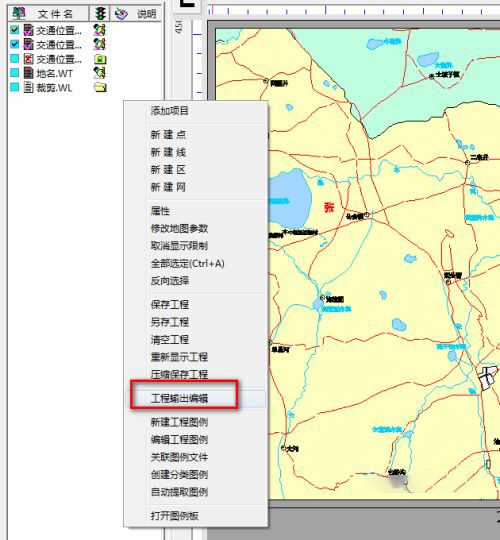 1、打开要输出的MapGI格式地形图,在软件工作台单击鼠标右键,出现下拉菜单,选择“工程输出编辑”;