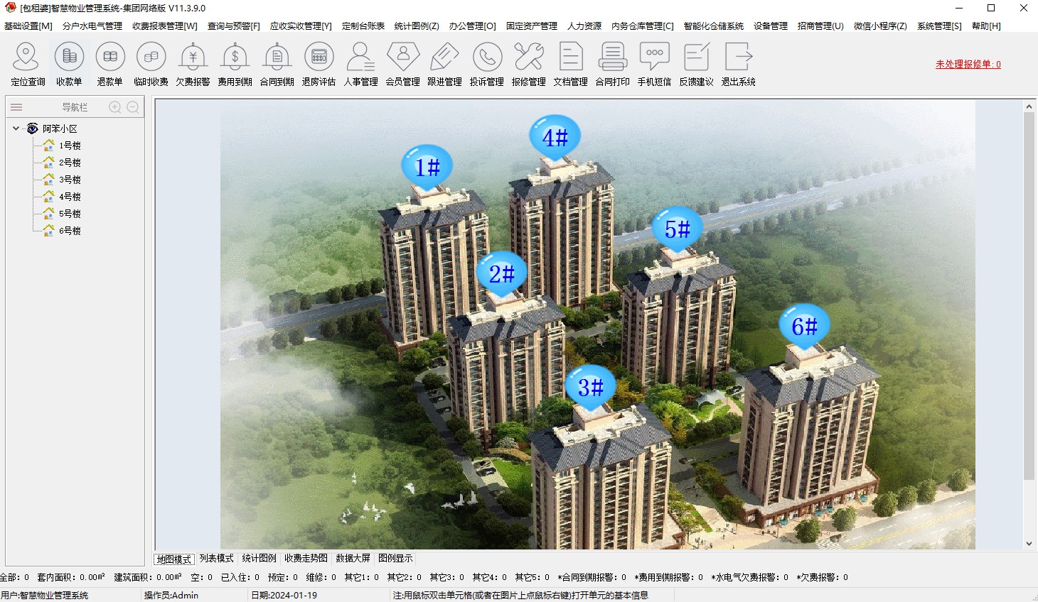 包含:物业合同到期报警、水电欠费报警、物业欠费报警、物业缴费到期报警提示、水电欠费明细报表、物业欠费明细报表、投诉未处理明细报表、人员合同到期明细表