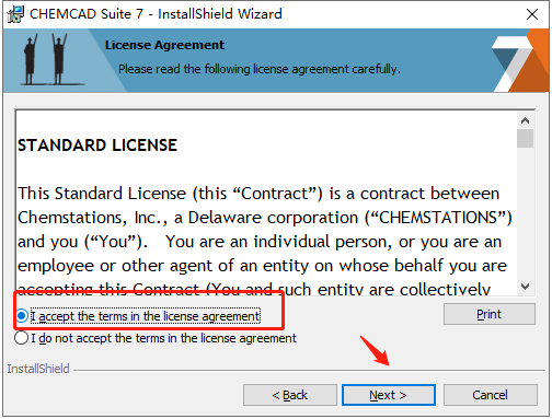 3、选择"I accept...",接受安装许可协议;