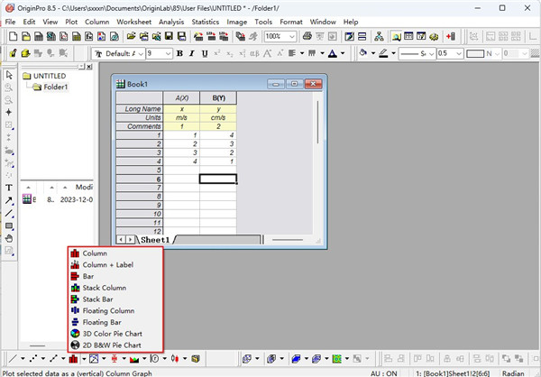OriginPro8.5是OriginLab公司推出的一款专业的函数绘图工具。主要是用于函数的数据分析和绘图。与其他同类型的程序相比,该软件在操作上比一般的软件都要的简单,但是功能却跟其他软件一样的丰富,这也就是促成了origin8.5既可以满足一般用户的制图需要,也可以满足高级用户数据分析,函数拟合的需要。其次origin8.5的绘图是基于模板而运行的,其系统本身就为用户提供了几十种二位和三维的绘图模板,同时允许用户自行定制模板,用户以此根据自己的喜好进行函数的设置。除此之外,origin8.5除了可以自定义模板之外,还可自定义数学函数、图形样式和绘图模板。