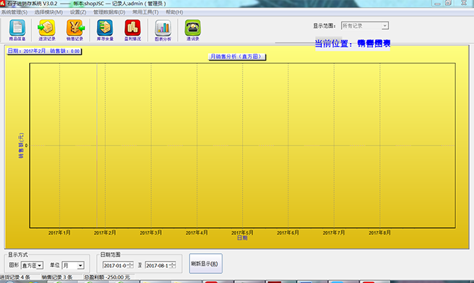 1、“图表分析”用于直观的显示一定时间段内的销售走势情况。