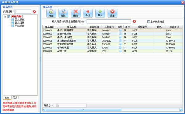在系统设置模块中点击“商品信息”进入商品信息界面如图所示: