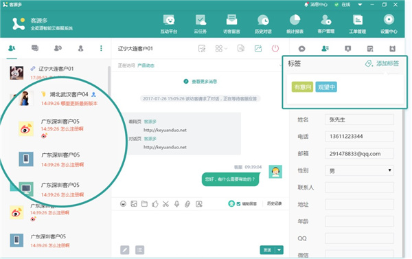 3、微博客服:支持微博接入,高效对话微博粉丝。