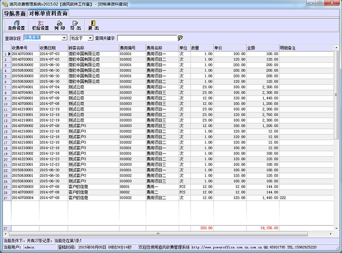 以设置多种条件,方便的查询出指定时间段或是指定顾客的收费记录