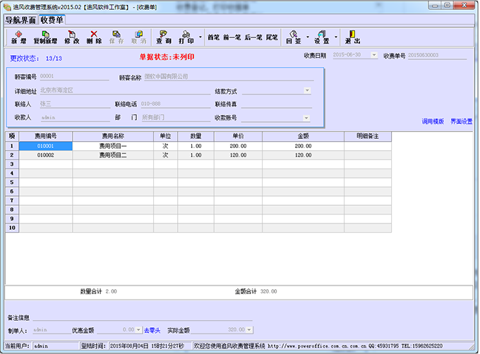 2、整合的收费单管理功能