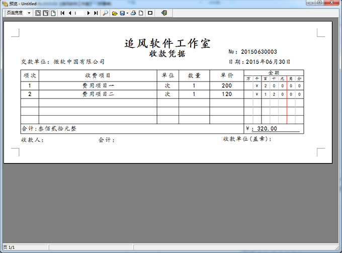 提供众多常用的收据打印格式,如果不满意,也可以依据自已公司的要求进行个性化设置,支持套表打印