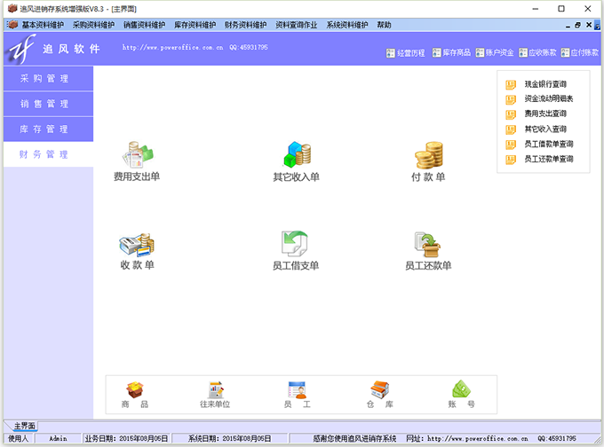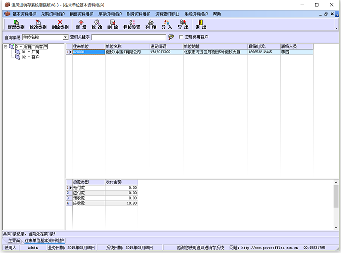 进销存系统中针对涉及到的商品,往来单位(即厂商和客户)、员工、仓库,账号等基本数据提供了强大的维护功能