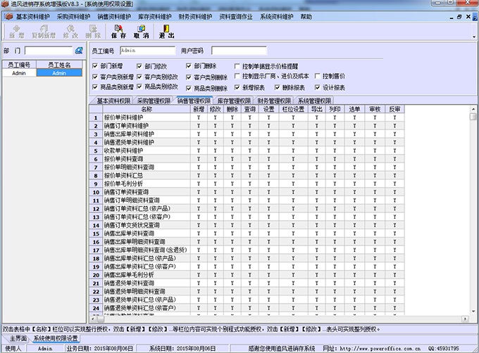 提供了全面的权限管理功能,针对每个查询及每种单据的每个按钮都可以设置权限