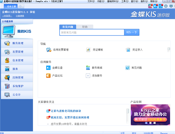 内置会计科目、凭证录入、明细账、科目余额表常用功能;
