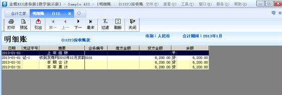 选择“文件”菜单中的“预览当前明细账”选项,则系统将正在查看的科目的明细账按打印的样式显示在屏幕上。