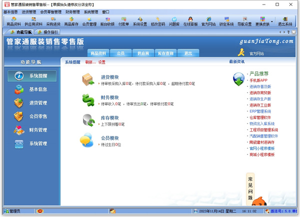 营家通服装销售管理软件是专门针对服装销售市场的软件,对于服装行业,小规模个体户来说是非常好用的,管家通服装销售管理软件还支持服装行业的名个岗位使用。