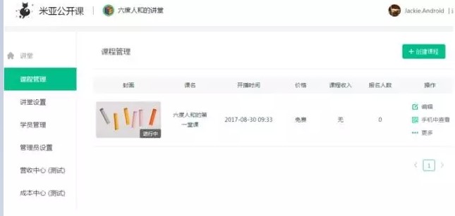 1、在电脑端通过微信登录“米亚公开课”,进入课程管理页。