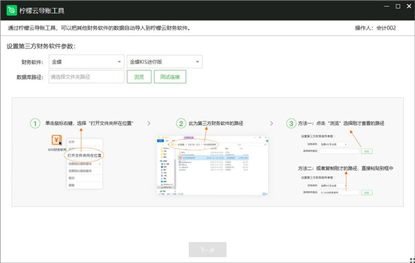 柠檬云导账工具官方版是柠檬云官方推出的一款便捷导账软件,柠檬云导账工具界面简洁,操作方便,如本机电脑已安装第三方财务软件,或者有第三方财务软件账号密码,使用导账工具即可一键完成账套迁移。支持金蝶、畅捷通、账无忧、易代账、好会计、精斗云、诺诺云记账、亿企代账、浪潮云会计、云帐房等近百款软件。除此之外,软件安全好用,永久免费,只要具有一定会计基础就可以轻松使用,适合各类大中小微型企业的财务核算和分析。有需要的朋友欢迎下载使用!