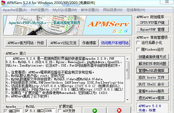 2、APMServ程序所在路径不能含有汉字和空格,否则将无法启动