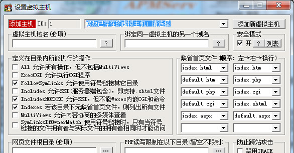 1、打开“Apache设置”—“虚假主机管理”