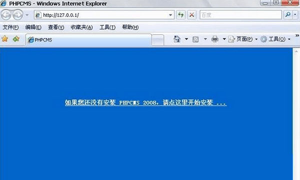 3、phpcms官方网站下载最新版的phpcms程序,下载后解压到D:\APMServ5.2.6\www\htdocs,运行http://127.0.0.1出现如下画面,提示你要安装phpcms2008程序