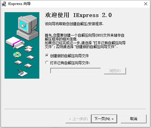 (1)选择默认选项“Create new Self Extraction Directive file”(建立新的自解压文件);