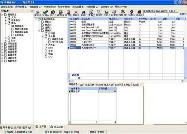 5、提供采购进货、销售出货、其它入库、其它出库、商品盘点等单据管理,还包括大量的明细表与汇总表