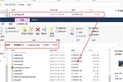 6、接着打开Crack夹,选择类型将“iphlpapi.dll”文件复制到软件目录中即可