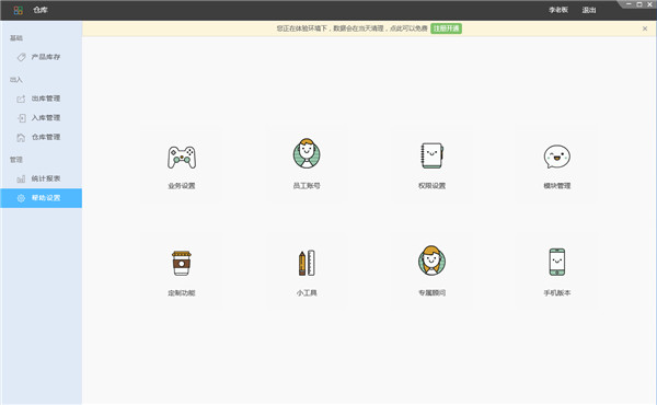 1、进销存模块,需要先启用“多仓库管理”功能,点击帮助设置,点击增值功能找到该功能
