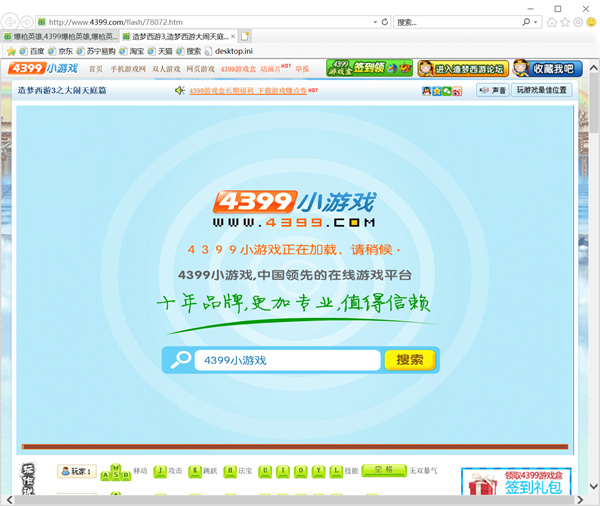 3、然后软件会自动启动ie浏览器,在ie里面玩游戏即可;