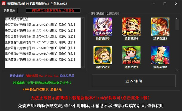 2、双击运行"逍遥游戏助手V5.3[造梦西游,爆枪英雄,完美漂移].exe"程序即可打开辅助,这里根据自己的需求选择造梦西游系列点击进入;