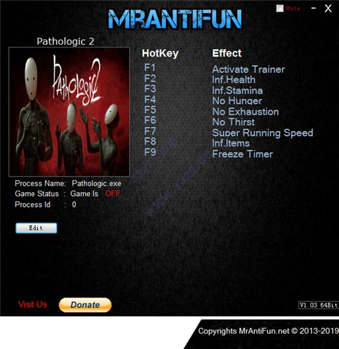 玩《瘟疫2》这种氛围阴森的恐怖游戏,本来就是个挺折磨人的事,面对那种压抑的环境和随时可能出现的危机,手残党真的很容易心态爆炸。这时候有个“瘟疫2修改器”简直是救命稻草,它提供的那八项功能,比如无限生命、无限体力,还有不会饥饿口渴这些,真的能让人彻底放下心理包袱。我个人最喜欢的是那个超级奔跑速度,在那种开放世界里跑图探索效率高太多了,再也不用担心被怪物追着跑时体力耗尽的绝望感。虽然用修改器可能会少点原汁原味的紧张感,但对我这种只想体验剧情、不想反复受虐的玩家来说,它确实让游戏体验变得轻松愉快,毕竟能按自己节奏去探索那个被瘟疫笼罩的诡异城镇,才是最舒服的玩法。 使用说明 F1——无限生命。 F2——无限体力。 F3——不会饥饿。 F4——不会疲劳。 F5——不会口渴。 F6——超级奔跑速度。 F7——无限道具。 F8——冻结时间。 使用方法 1、解压文件。 2、启动游戏。 3、启动修改器。 4、右键点击修改器界面最小化。 注意事项 1、首先进入游戏然后激活修改和修改项目。 2、至少有任意一个道具在背包中才能够修改无限道具。