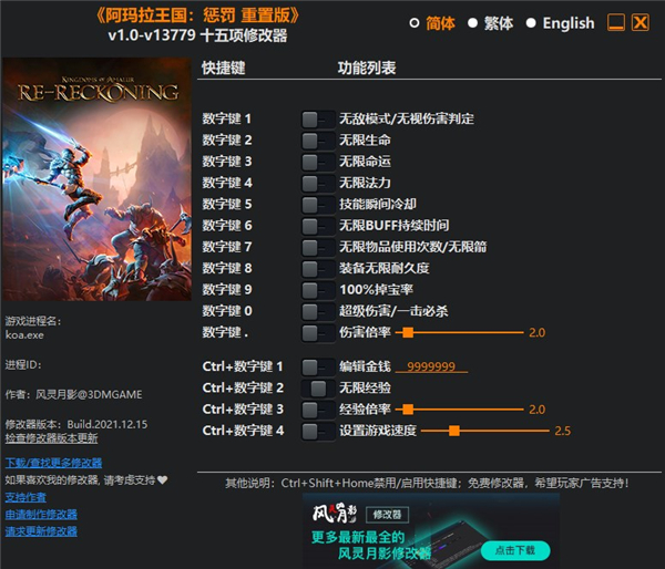 阿玛拉王国惩罚重制版修改器风灵月影版功能介绍