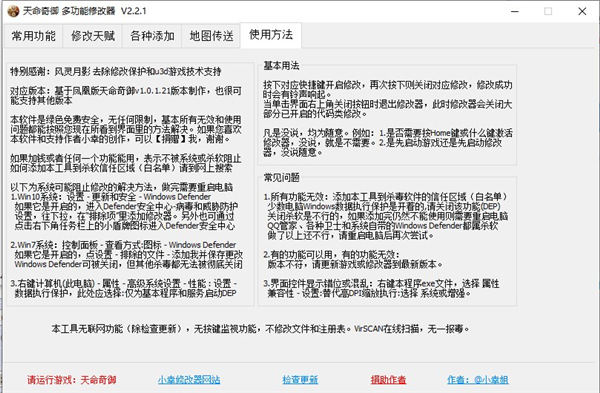 1、修改器目前只有简体中文语言,在任何系统上均显示简体中文,不会出现乱码。2、当单击界面右上角关闭按钮时退出修改器,此时修改器会关闭所有已开启的修改。