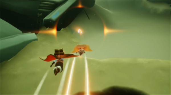 3、找到黄色人影,与它们互动 收集“光之翼”,我们的 飞行技能就可以得到 升级――斗篷背后 星星的数量就代表我们的飞行级别。