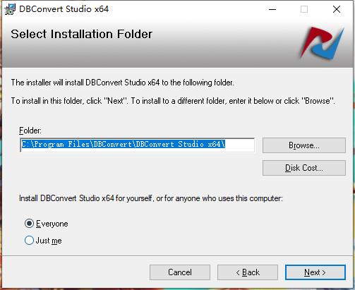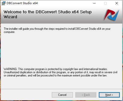 安装向导默认设置的软件默认安装路径为C:\Program Files\DBConvert\DBConvert Studio x64