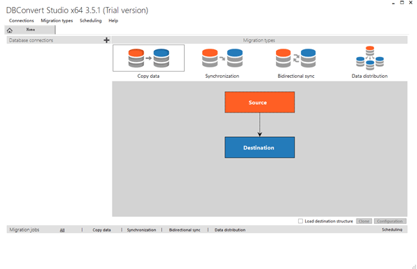 1、以为任何本地或远程MS Windows,Linux,MacOS或基于BSD的数据库服务器配置源和目标数据库连接这个非常棒的应用程序使您能够以多种方式迁移数据,您可以选择以下任何经过实战考验的场景: