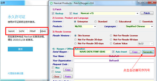 8、此时返回注册机,点击“Generate”键即可自动填写注册码