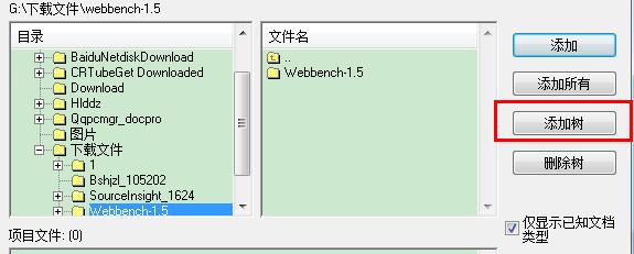 5、然后点击添加树,添加目录结构下所有文件到工程。最后点击关闭,项目就建立完成。