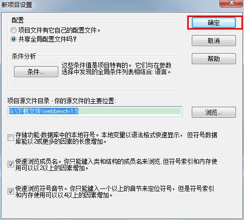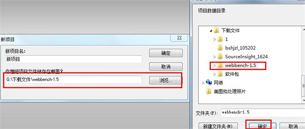 3、点击浏览,选择你的源代码所在目录。给新建的Source Insight工程取个名字,然后点击OK。