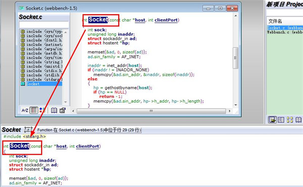7、鼠标点击任意的函数名或变量,即可在下方显示其定义。