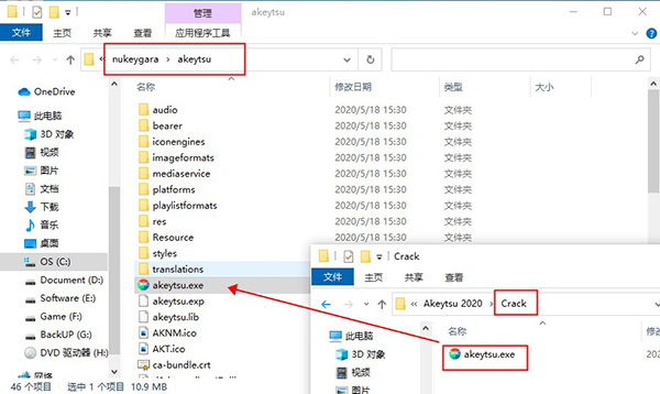 5、找到Akeytsu软件的根目录,将本站提供的补丁复制过去,并进行替换;