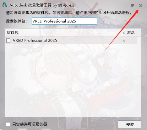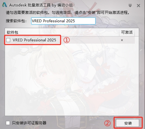 10、找到并勾选【VRED Professional 2025】程序,再点击【安装】。