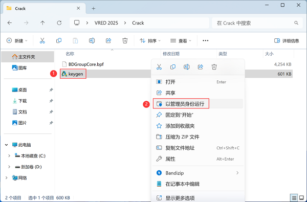 9、找到【Keygen】文件夹,右键选择【以管理员身份运行】它。