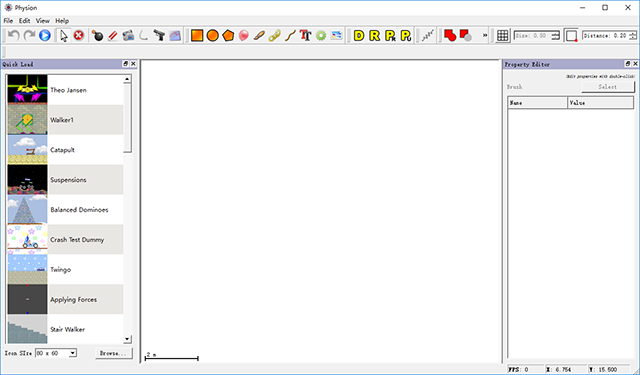1、Physion的界面和电脑上画图的软件一样,都是一些工具,2、可以使用它们作出任何二维的模型,虽然不是立体的,但是这些模型作出的反应都具有最真实的物理特性。