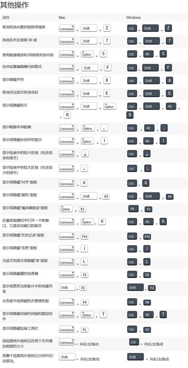 显示或隐藏动画时间轴和图层控件:Command+Option+T