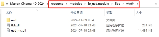 9、打开路径:resource\modules\io_usd.module\libs\win64。
