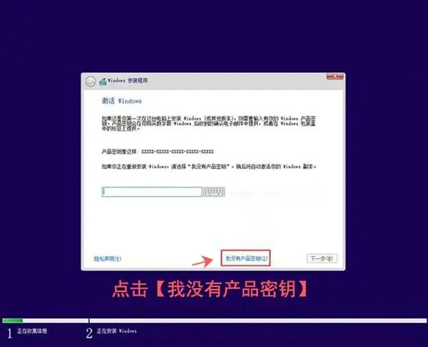 3、输入产品密钥,没有的可以先点击【我没有产品密钥】
