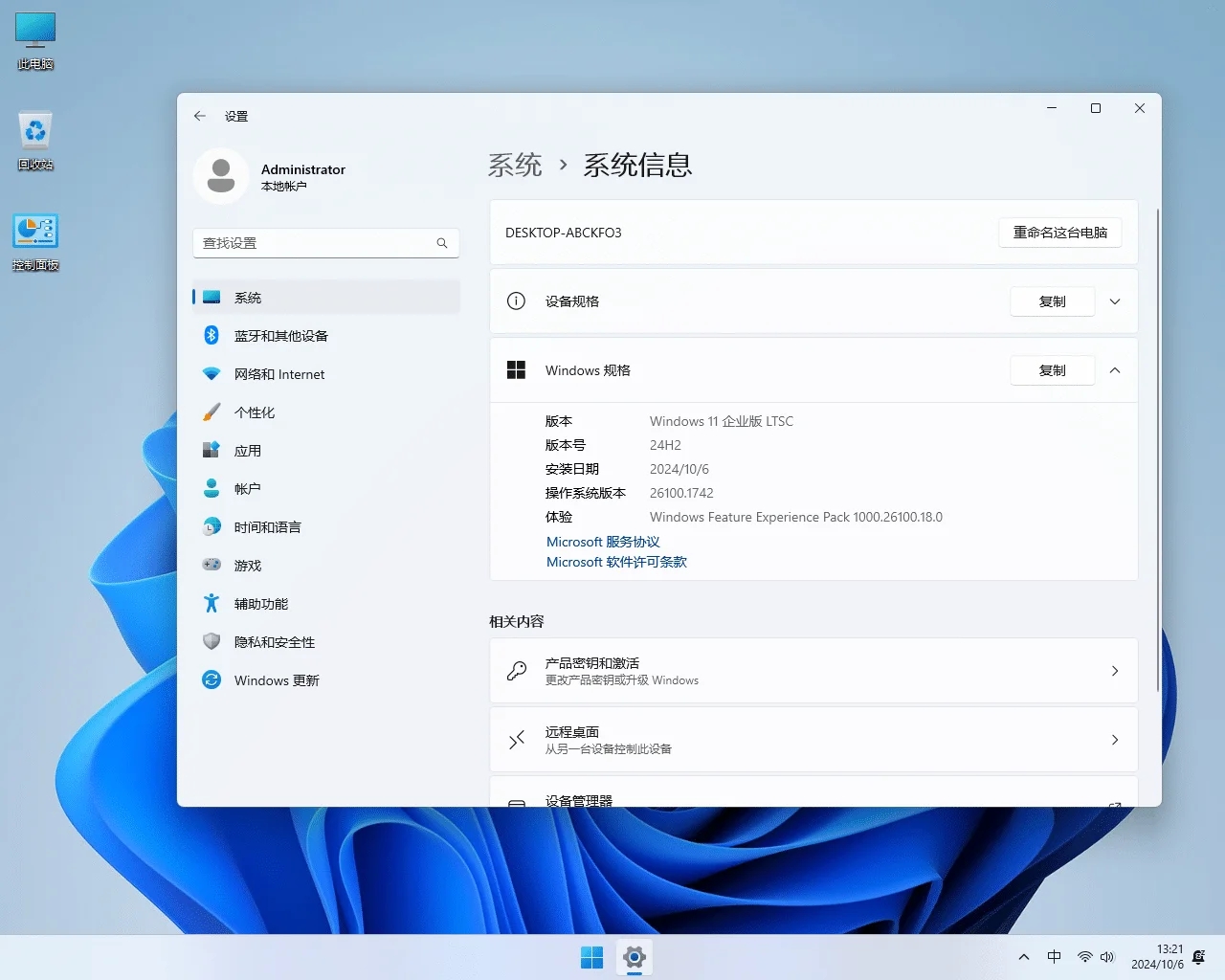Windows11 LTSC中文版是由微软公司开发的操作系统,此版本最大亮点在于其极简设计,去除了大量非必要的功能和应用,仅保留系统运行所需的基础元素,从而实现了显著的系统瘦身。并且,Windows11 LTSC还自带administrator最高管理员权限,用户无需配置账户,安装后可直接进入桌面!